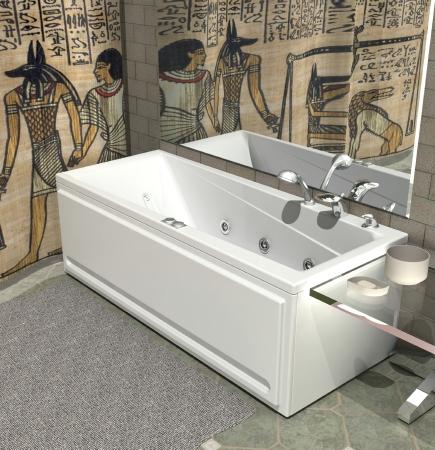 Ванна акриловая, каркас, слив, фронтальная панель. Дополнительная комплектация: боковая панель, гидромассаж, аэромассаж, набортный смеситель, аромотерапия, дезинфекция, хромотерапия, спинной массаж. Размер: 150*70 см. Страна производитель-Россия.