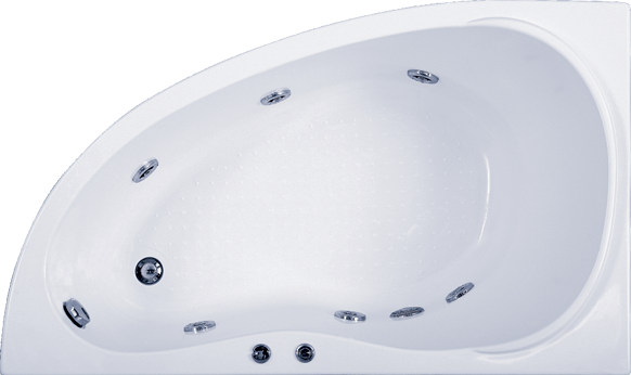 Ванна акриловая гидромассажная, каркас, сифон. Левый или правый разворот. Дополнительно заказывается фронтальная панель, шторка, смеситель, подголовник. Размер 150*90 см. Страна производитель-Россия.