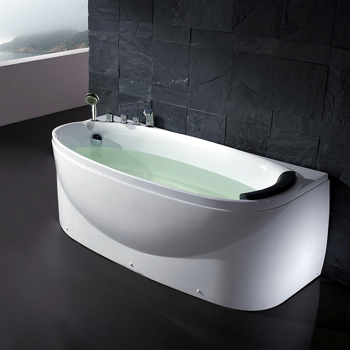 Пристенная одноместная акриловая ванна (160л)-правое или левое исполнение-размер:1700x800x640-мощный малошумный воздушный насос-аэромассаж-8 форсунок-встроенный смеситель-излив-многофункциональная душевая лейка-пневматическое управление-хромотерапия (многоцветная подсветка)-уникальная система слива-подголовник. Размер 170*80 см. Страна Китай