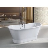 Ванна чугунная отдельностоящая на белом декоративном постаменте, устройство слива перелива автомат. Размер 183*78 см. Страна производитель-Россия.