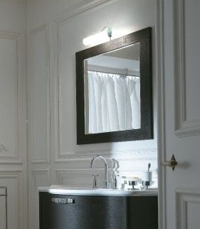 Зеркало в деревянной оправе, цвет черный. Дополнительно заказывается светильник в хроме. Размер 80*90 см. Страна производитель-Италия.