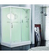 Угловые разносторонние душевые кабины 120/80 см, 120/85 см правые и левые душевые кабины ppollo, ago, nt у которых одна сторона длинная, а другая – короткая, разносторонние душевые кабины с раздвижными дверями с небьющимся стеклом Ассиметричные душевые кабины с поддоном из искусственного камня на регулирующихся ножках по недорогой цене в нашем магазине сантехники.
