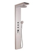 Большим спросом в последнее время пользуются массажные Душевые панели – специальные душевые комплексы (металлические душевые стойки или пластиковые душевые массажные панели) для принятия разнообразных водных процедур (каскад–водопад в душевой кабине, вертикальный массаж в душевой кабине, массаж поясницы в душевой кабине и так далее). Угловая душевая панель Grohe, Hansgrohe изготовлена из алюминия, это – массажная стойка для душевой кабины с большими форсунками и верхним тропическим душем-тарелкой, и помимо всего прочего, это – душевая стойка со смесителем термостатом. Настенная душевая массажная панель Appollo, Ideal Standard-душевая панель, занимающая мало места в душевой кабине, что крайне важно и актуально, если у вас маленькая душевая кабина, и плюс ко всем своим преимуществам – это душевая стойка, регулируемая по высоте. Если вы хотите купить душевую панель с доставкой и гарантией – добро пожаловать в наш интернет-магазин сантехники в Ростове-на-Дону, телефоны: 256-62-60
