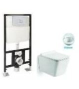 - Santiline Комплект унитаз подвесной, безободковый, сиденье микролифт + Инсталляция с кнопкой (хром) SL-5007 + SL-01