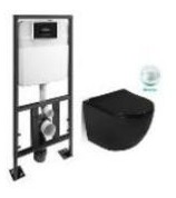 - Santiline Комплект унитаз подвесной, безободковый, матовый чёрный сиденье микролифт + Инсталляция с кнопкой (чёрная матовая) SL-5018MB + SL-03